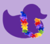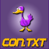 Description: a purple duck against a speckled purple background with the word CON.TXT in yellow